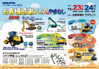「2018 お客様感謝フェア in やまなし」 開催概要 日時: 11月23日(金・祝) 9:00−16:00 会場: コマツ甲信・レンタル21 山梨営業所